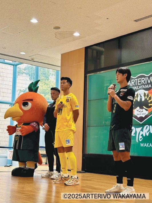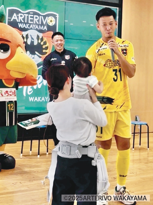 10月5日、JR和歌山駅前わかちか広場で開かれた「梅酒バル」に小久保裕也主将と磯部勘太選手、そしてリーヴォ君が参加しました。