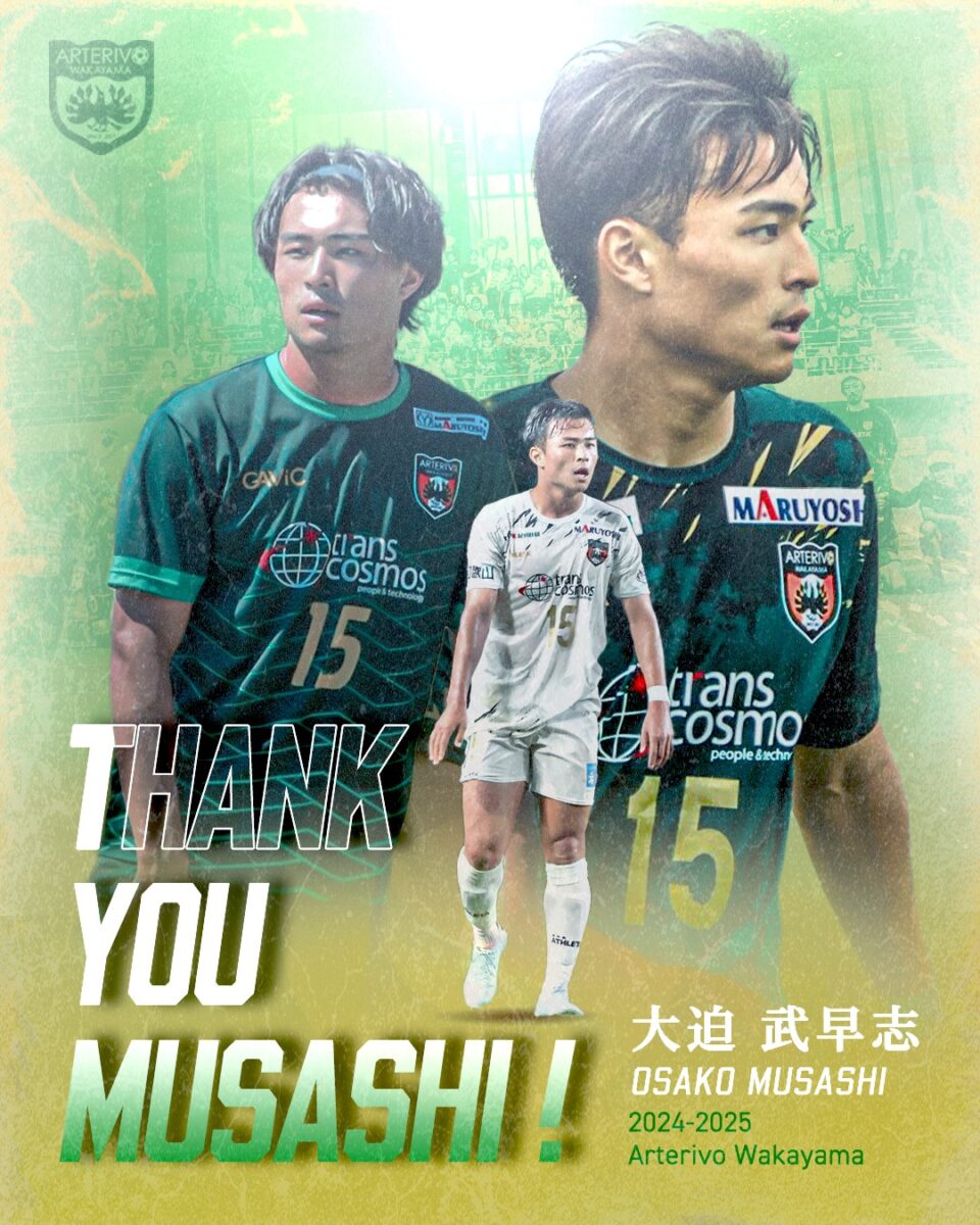 2024、2025年の2シーズンを共に闘った大迫武早志選手が今シーズン限りで引退することになりましたので、お知らせいたします。