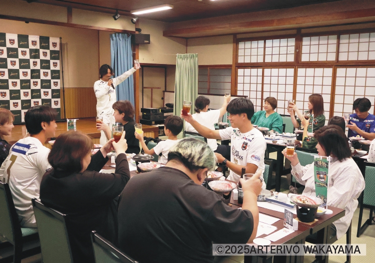 参加者の皆さんは選手との歓談を楽しみながら、地元和歌山の食材をふんだんに使った花山温泉様自慢の料理を味わいました。