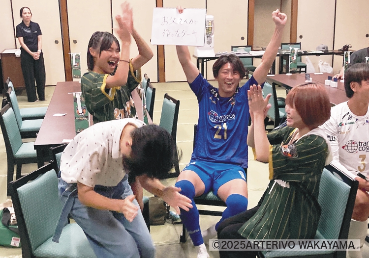 選手と参加者がチームを組んでのクイズ大会では、花山温泉様やアルテリーヴォにまつわる問題が出され、佐藤選手擁する〝チーム守護神〟が優勝しました。