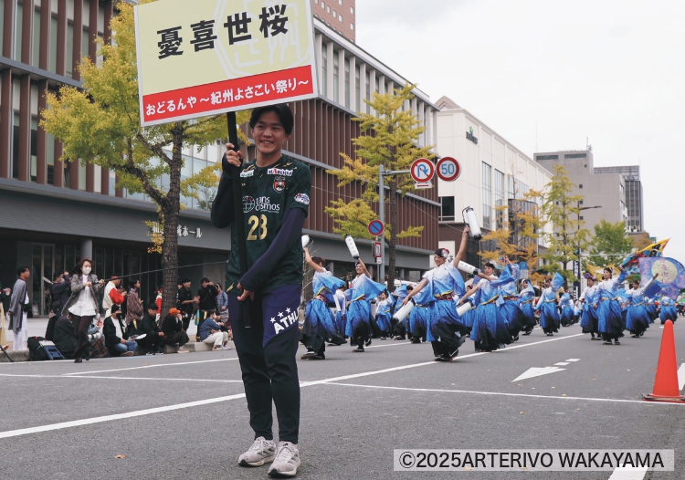 また、けやき大通り演舞場ではチーム名を書いたプラカードを持って踊り子たちを先導しました。
