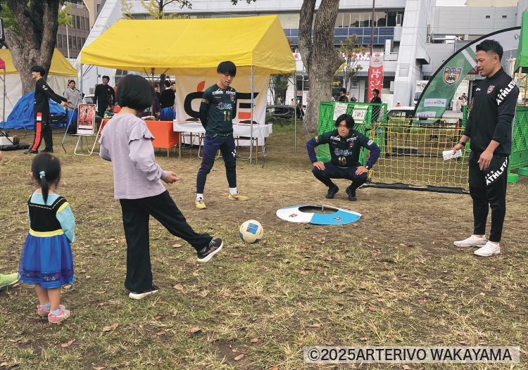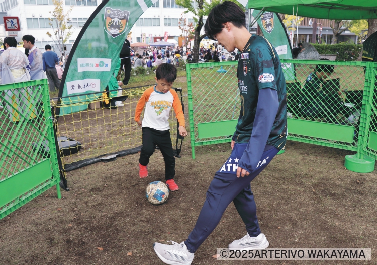 選手と対決する「1on1」やサッカーゴルフで来場者と交流。