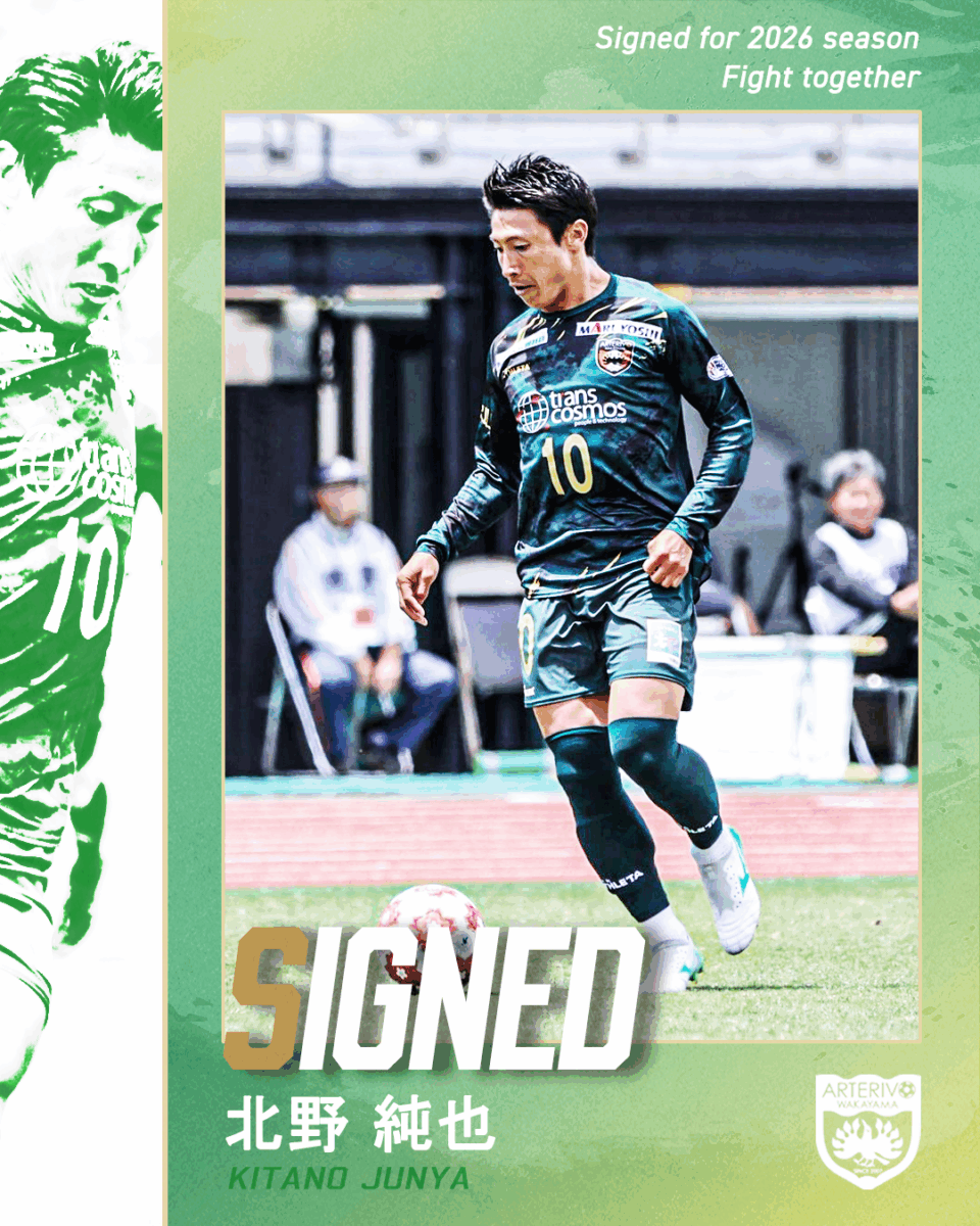北野純也選手と2026年シーズンも契約することになりましたので、お知らせ致します。