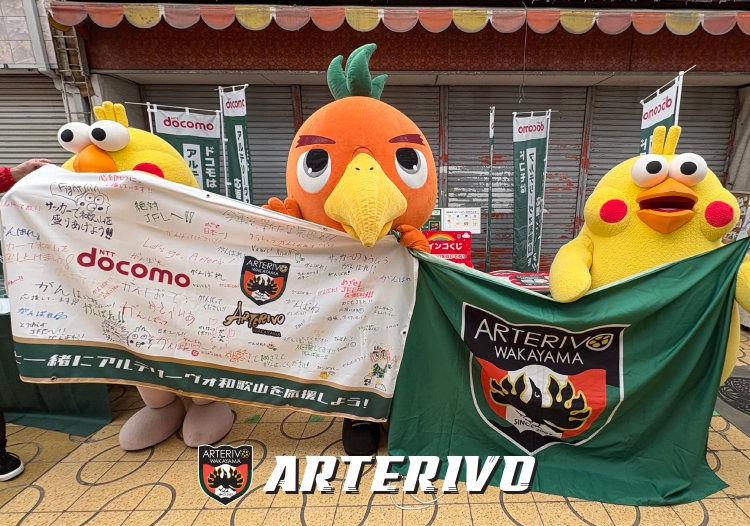 「d払い」「dポイントクラブ」アプリの券面をアルテリーヴォオリジナルデザインに変更できるサービスをPRしたほか、応援フラッグにメッセージを書くコーナーを設けました。