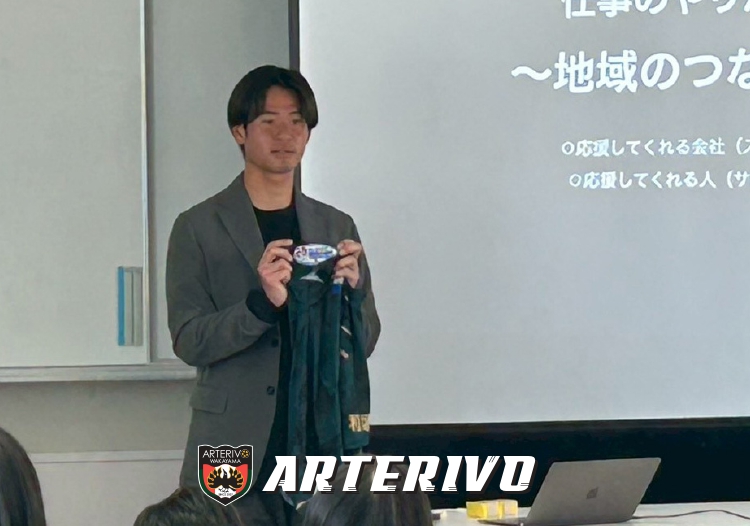 「サッカー選手という数多くない分野の職業を少しでも知っていただき、サッカーやスポーツに関らず、これから自分が歩む分野に何か一つでも活かせるものを感じ取ってくれたら嬉しいです。アルテリーヴォ和歌山もより認知してくれる良い機会となりました。ありがとうございました」