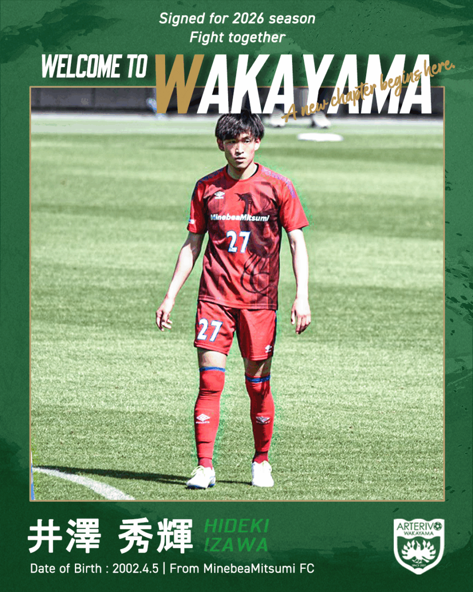 アルテリーヴォ和歌山に関わる全ての皆様、初めまして。ミネベアミツミFCより加入することになりました井澤秀輝です。