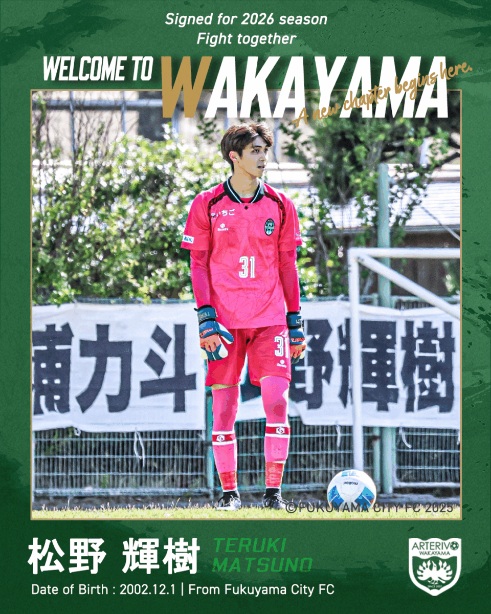 福山シティFC(中国リーグ)から松野輝樹(まつの・てるき)選手の加入が決定しましたのでお知らせいたします。
