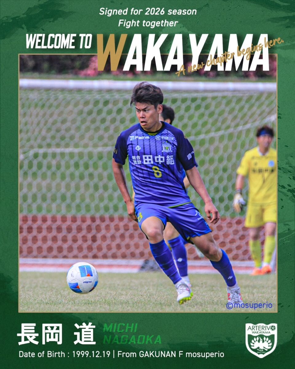 岳南Fモスペリオ(東海1部)から長岡道(ながおか・みち)選手の加入が決定しましたのでお知らせいたします。